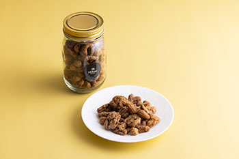 クミンパウダーやシナモンなど、香り豊かなスパイスを絶妙にブレンド。キャラメルのまろやかな甘みで包み込み、深みのある味わいに仕上げました。ほどよい甘さとスパイスの余韻が、お酒のおつまみにもぴったりです。