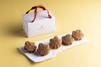 広島名物・にしき堂のもみじ饅頭をヒルトン広島限定ボックスにてご用意。こしあん、粒あん、お餅、チョコレート、チーズクリームの5つの味がお楽しみいただけます。広島の魅力が詰まったお土産にぴったりです。