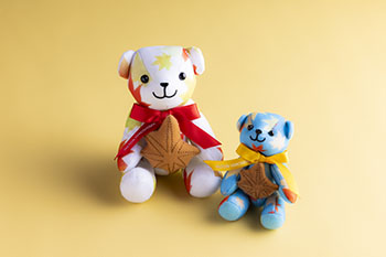 旅の思い出や大切な方へのお土産に最適なヒルトン広島ベア。もみじ饅頭を抱えた姿がチャーミングで、ひとつひとつ個性のあるデザインも魅力です。お気に入りの子をぜひ見つけてください。