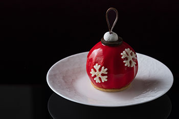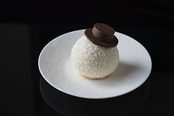 芳醇なトンカ豆の香りをまとい、イチジクのスパイスコンポートを忍ばせたミルクチョコレートのムース。豊かな香りと奥行きのある味わいをお楽しみいただけます。