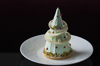 イタリア産ピスタチオの豊かな風味を閉じ込めたムースの中にはマスカルポーネチーズと抹茶の香りが重なり合う、上品なクリームを忍ばせました。