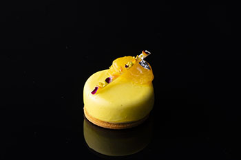 八朔とダージリンティーのコンポートを閉じ込めた、初春を感じさせる鮮やかな黄色のバニラムース。
