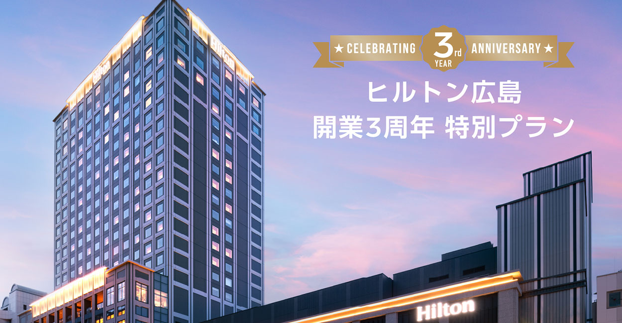 ヒルトン広島は、おかげさまで2025年10月22日に開業3周年を迎えます。皆様への感謝の気持ちを込めて、3周年を記念した特別プランをご用意いたしました。