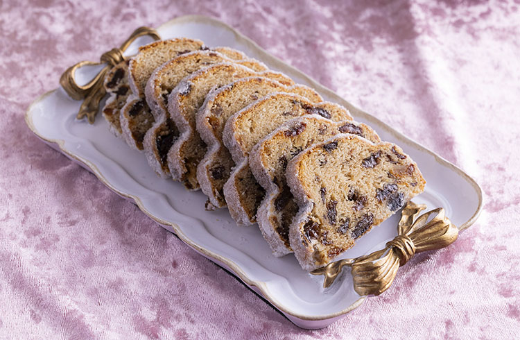 クリスマスの訪れを告げる、ドイツの伝統菓子。ぎっしり詰まったドライフルーツとスパイスの香りが、ホリデー気分を盛り上げてくれます。