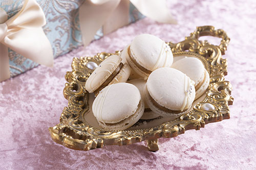 ホワイトチョコレートのマカロンに香り高いアールグレイティーを閉じ込め、まるでマリー・アントワネットが身に着けていた宝石のようなマカロン。