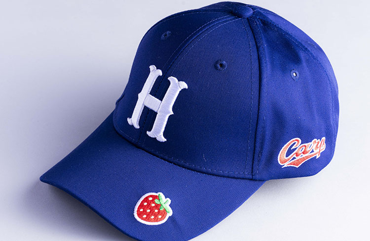 紺色にカープ球団旗ロゴであり、ヒルトンのイニシャルでもあるHのロゴが入ったキャップと、カープを象徴する赤色にCのロゴが入ったキャップも販売しております。
