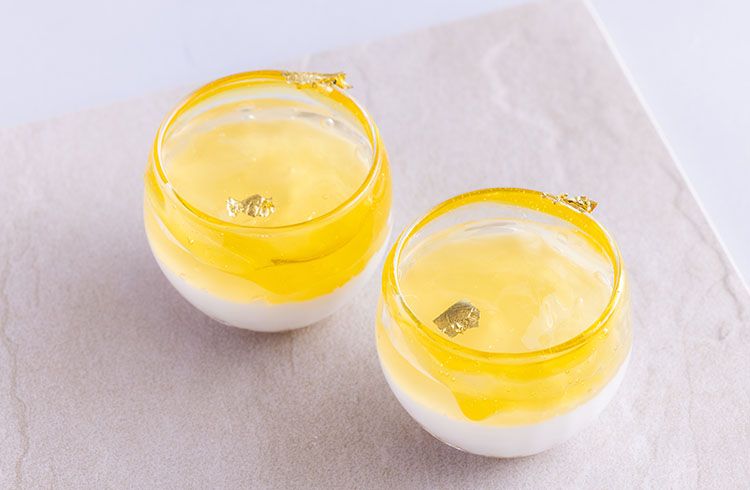 ハニーポットをイメージし、はちみつの甘味とカモミールの香りを閉じ込めたジュレを重ねたさっぱりとしたヨーグルトムース