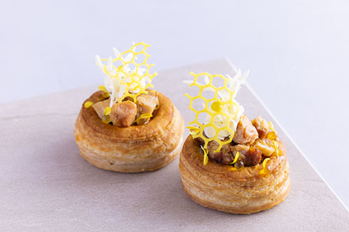 レモンハニーキャビアをあしらったジューシーなスモークタンドリーチキンパイ