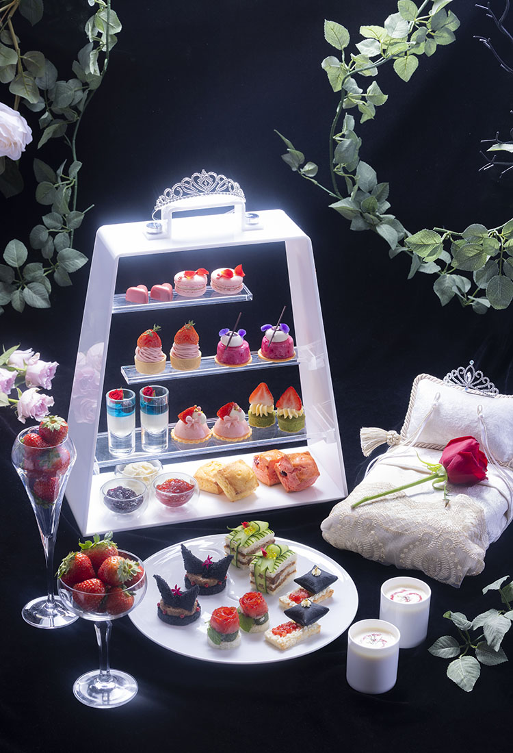 王女や魔女、茨の森など物語に登場するキャラクターやアイテムを思わせるモチーフやカラーを取り入れ、物語の世界観に浸れる特別なひとときをお楽しみいただけます。