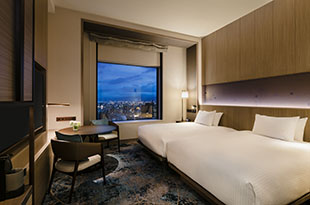 広島の美しい自然や伝統工芸を随所に用いたモダンなインテリアの客室には55インチの大型テレビ、Wifi、ワークデスクを完備。高層階ならではの景観と、上質なアメニティ、フロア滞在者専用のエグゼクティブラウンジのご利用をお楽しみいただけます。